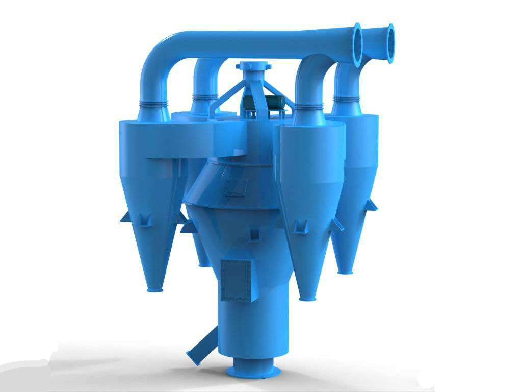 1、出磨物料由选粉机上部料斗进入选粉机内壳,落到与转子成一体的组合式螺旋桨散料盘上,在散料盘的高速旋转作用下,物料一方面受到惯性离心力作用向四周撤出,同时螺旋桨散料盘叶片产生的上升气流作用向上扬起,在散料盘螺旋桨叶片上形成物料沸腾。物料中较细的颗粒向上飘起,呈悬浮分散状态,而较粗或较重的物料被散料盘叶片分散沿筒壁落下,完成第一次选粉。